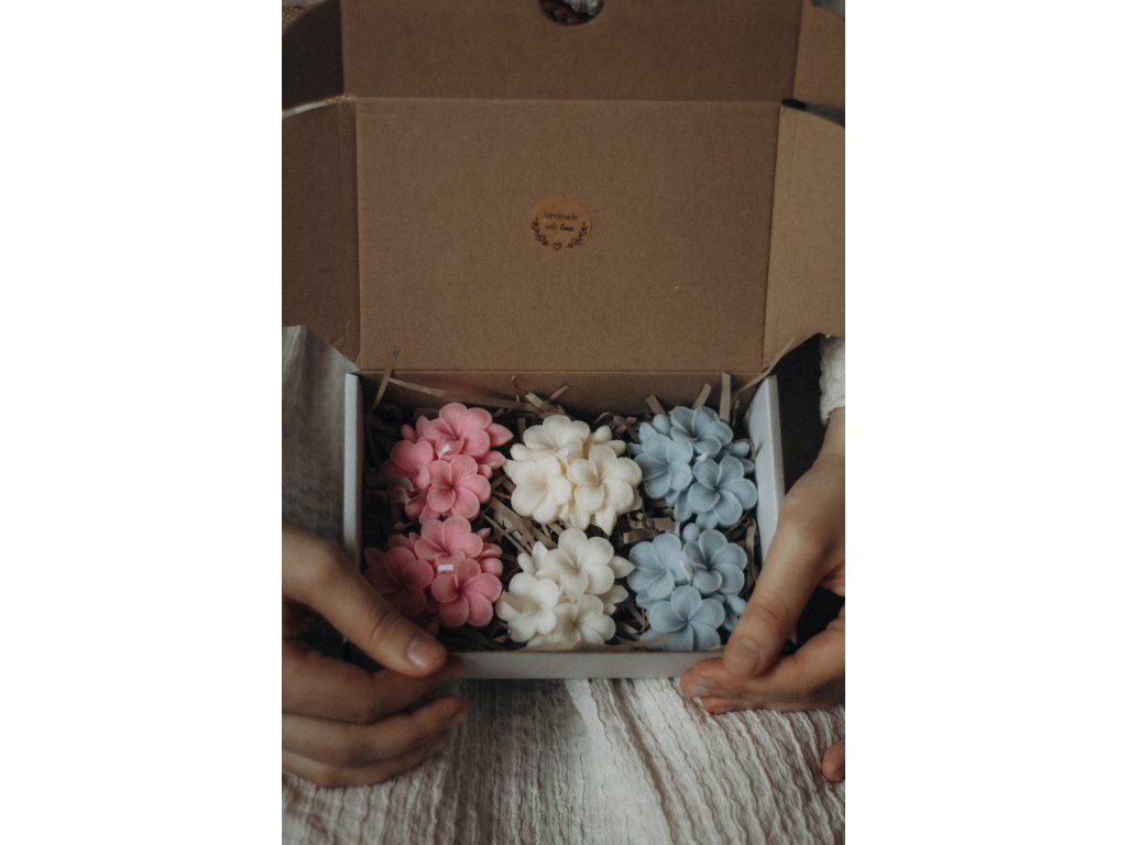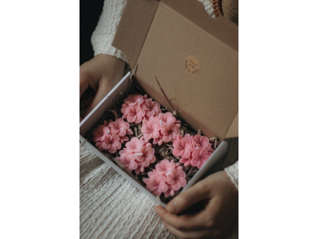Dárková sada plovoucích svíček (18cm×13cmx4 cm). Sada obsahuje 6 svíček ve tvaru květin. Svíčky jsou vyrobeny z přírodního sójového vosku.